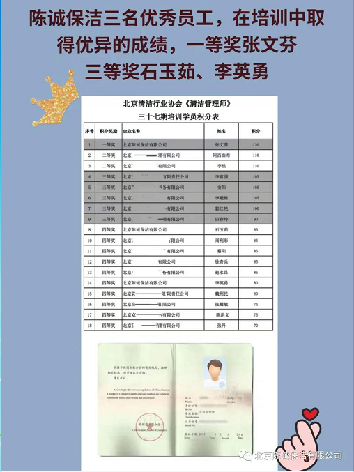 陈诚保洁《清洁管理师》第三十七期培训